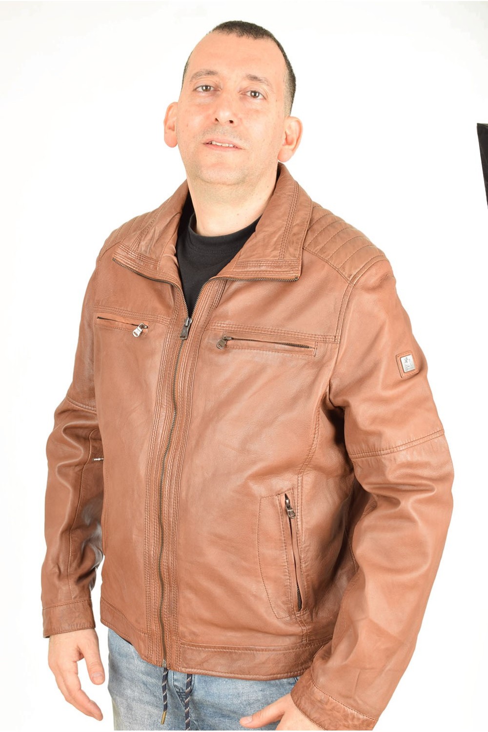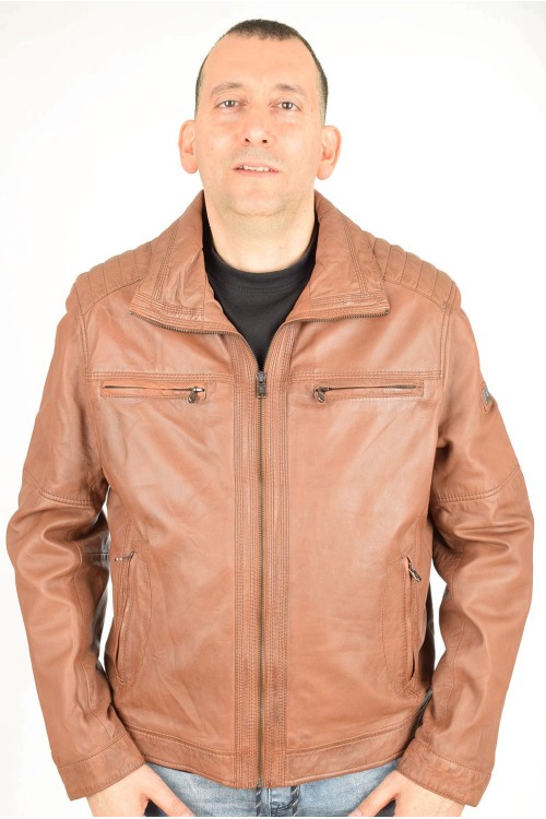Елегантно кафяво яке от естествена кожа