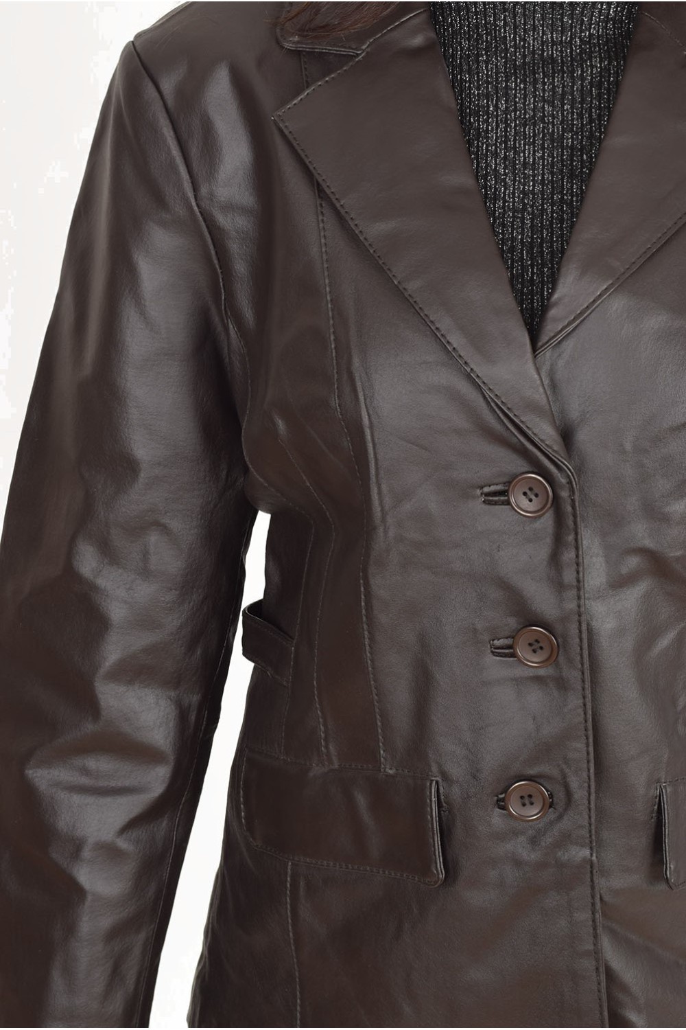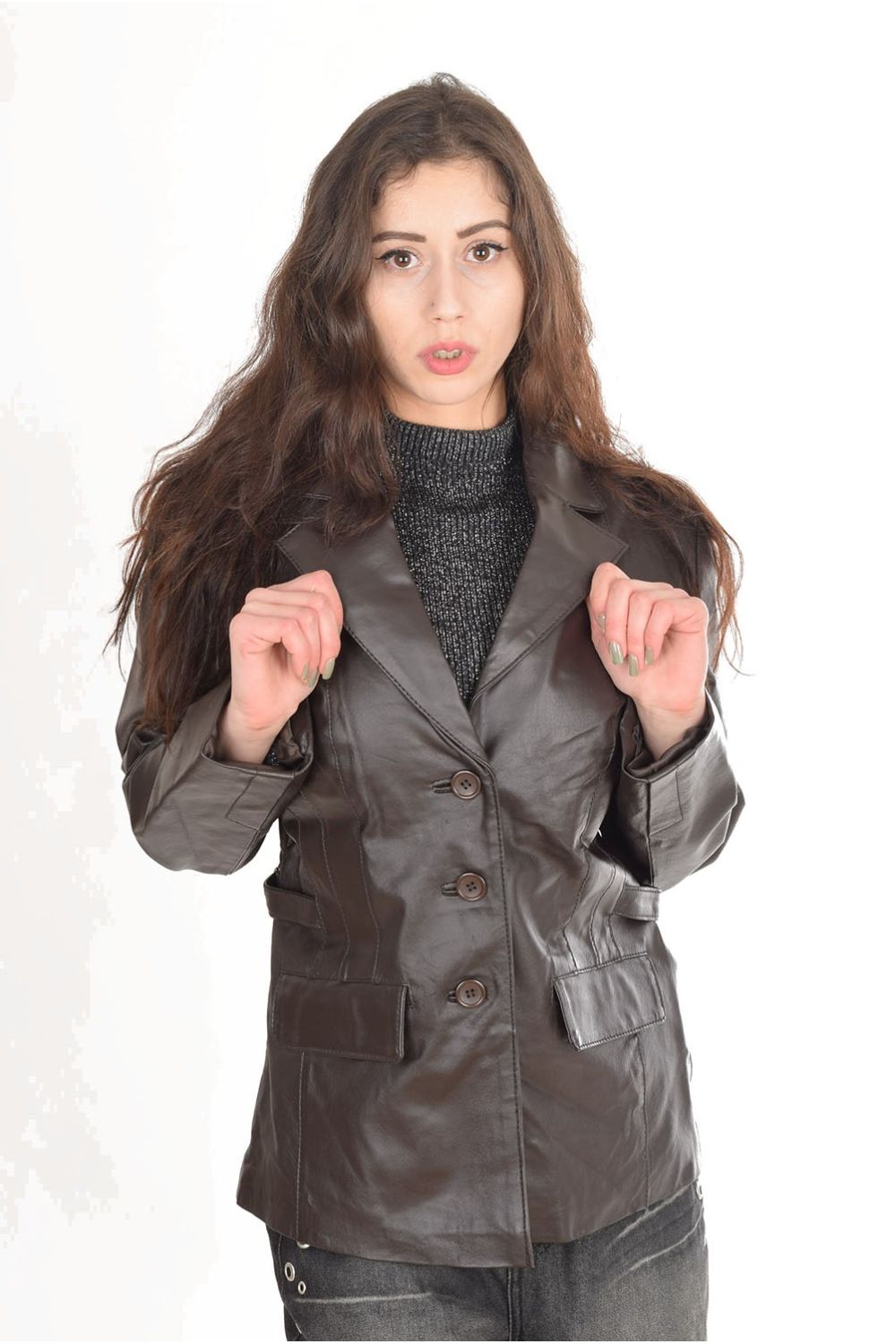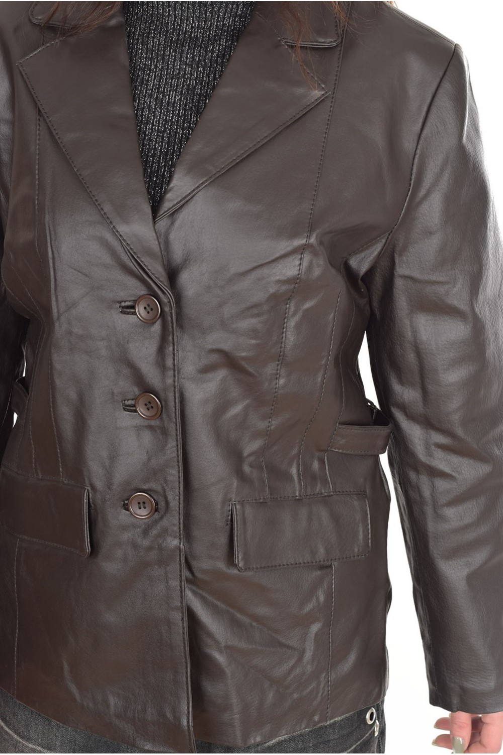 Елегантно тъмно кафяво яке от естествена кожа