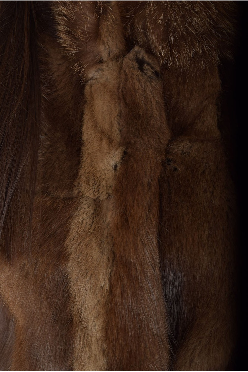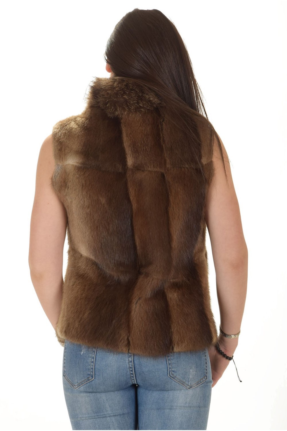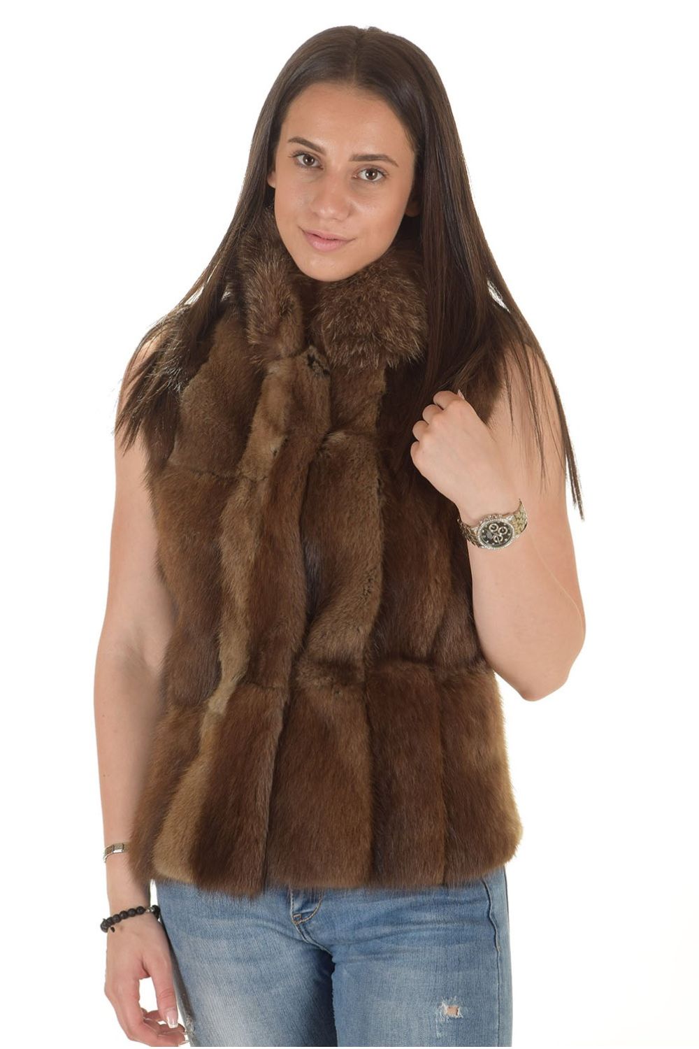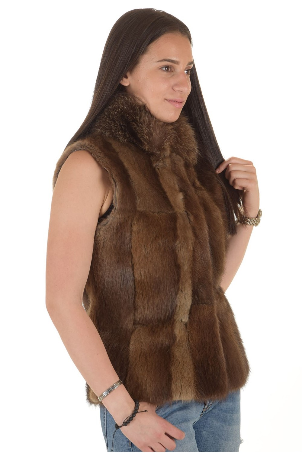 Красив дамски елек от ондатра . Яката е от естествен косъма на енот.Гръдна обиколка: 94 см. Дължина: 68 см. Рамене: 37 см. Разстоянието на раменете е измерено от шев до шев на ръкавите. Mоделът е висок: 173 см.| За продукта | |