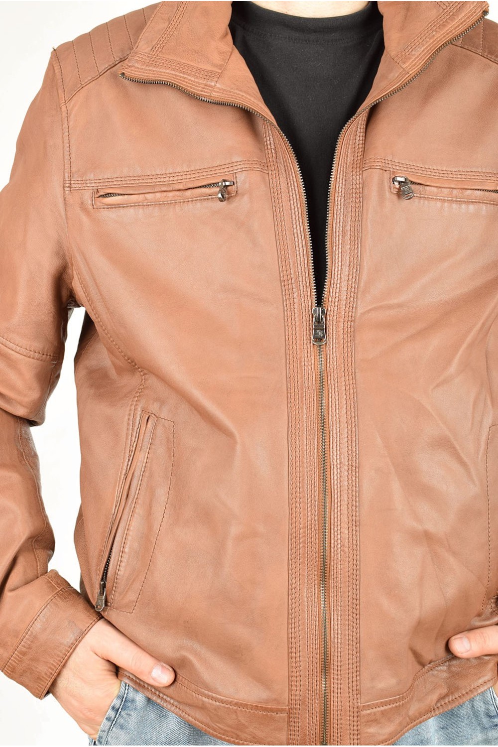Класическо кафяво яке от естествена кожа