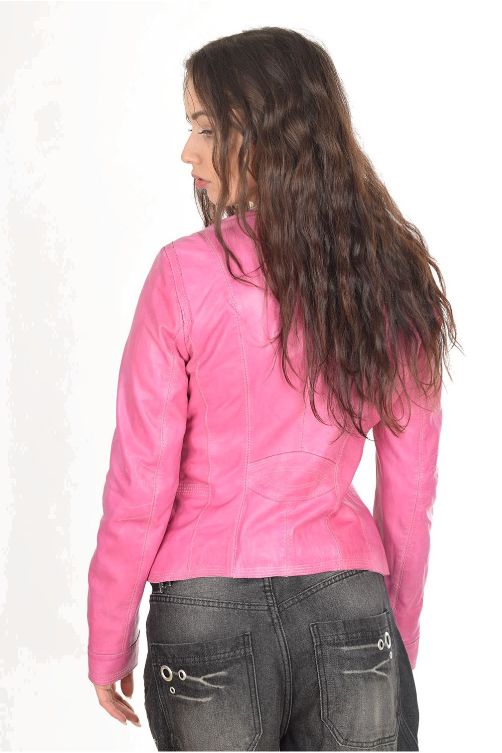 Кокетно розово яке от естествена кожа