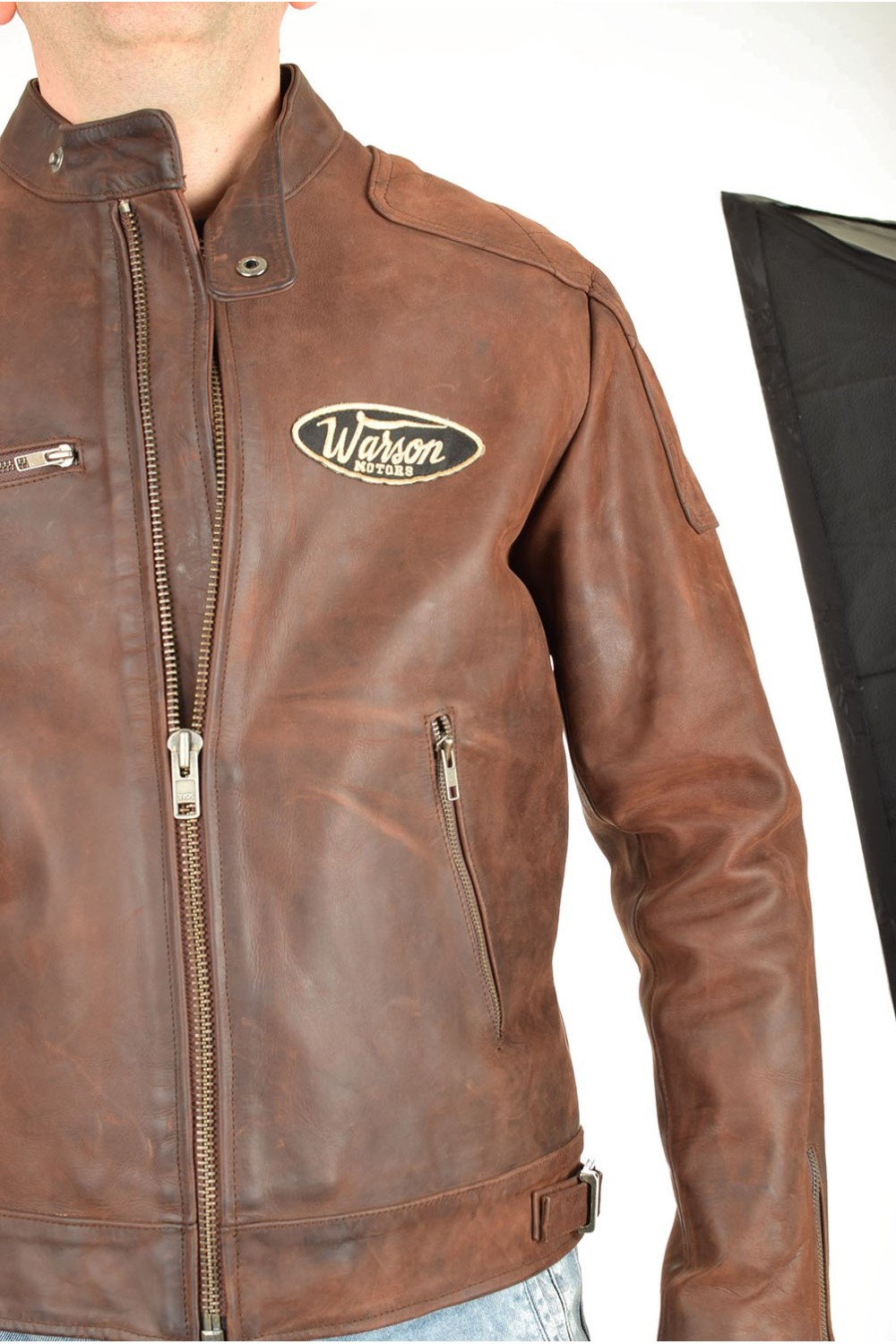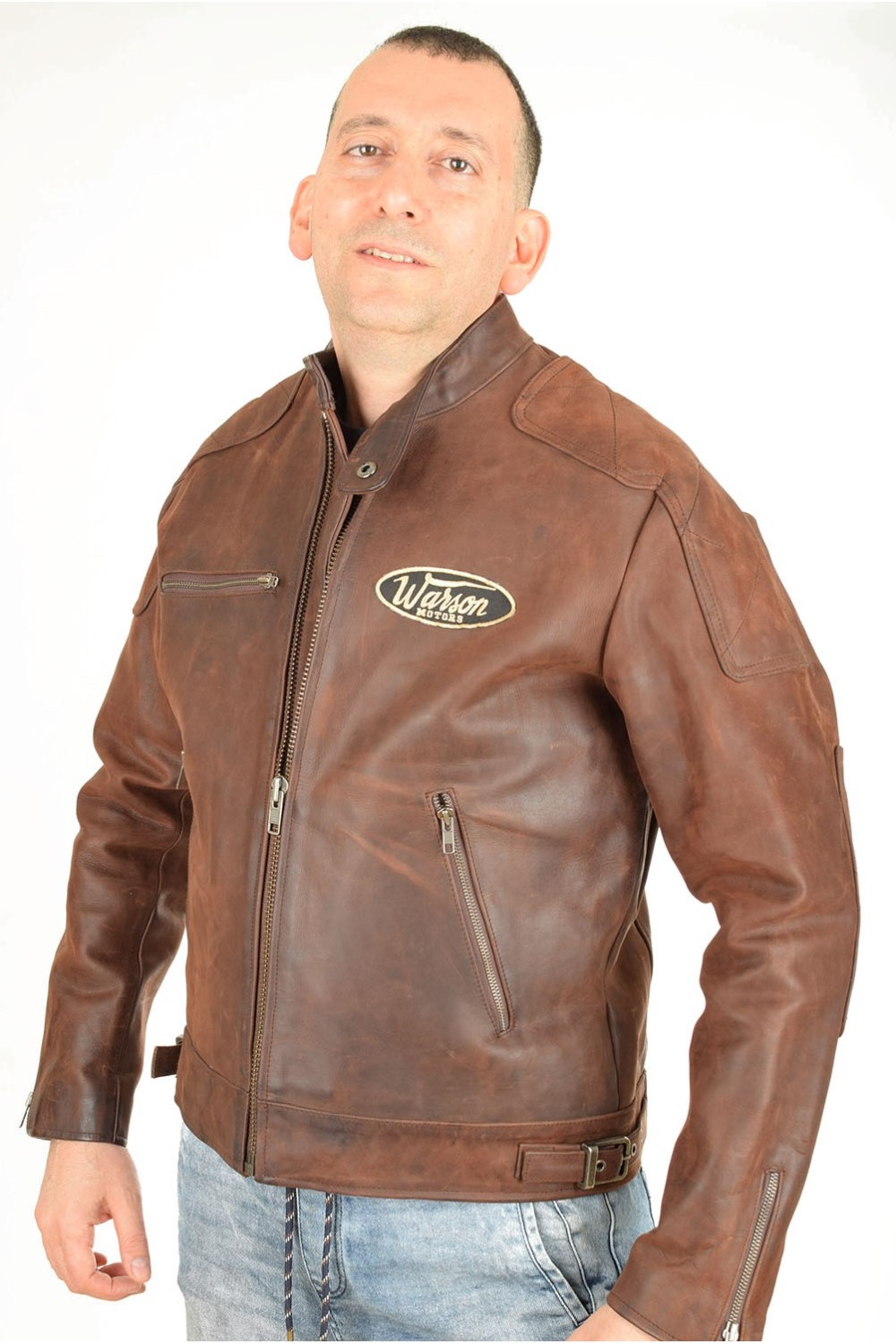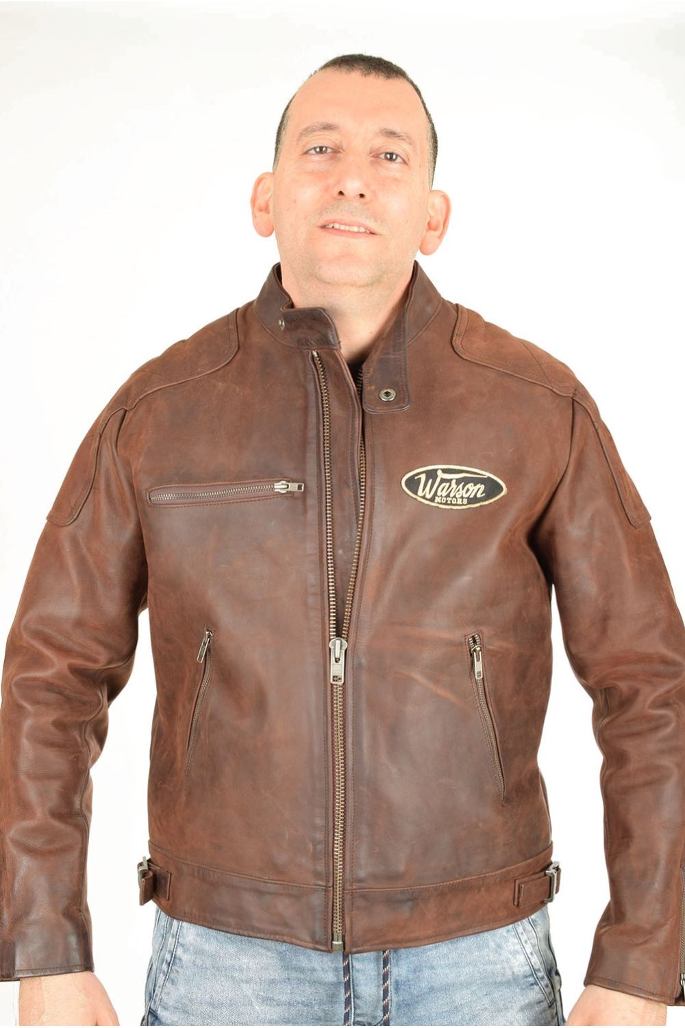 Мъжко моторджийско яке от естествена кожа