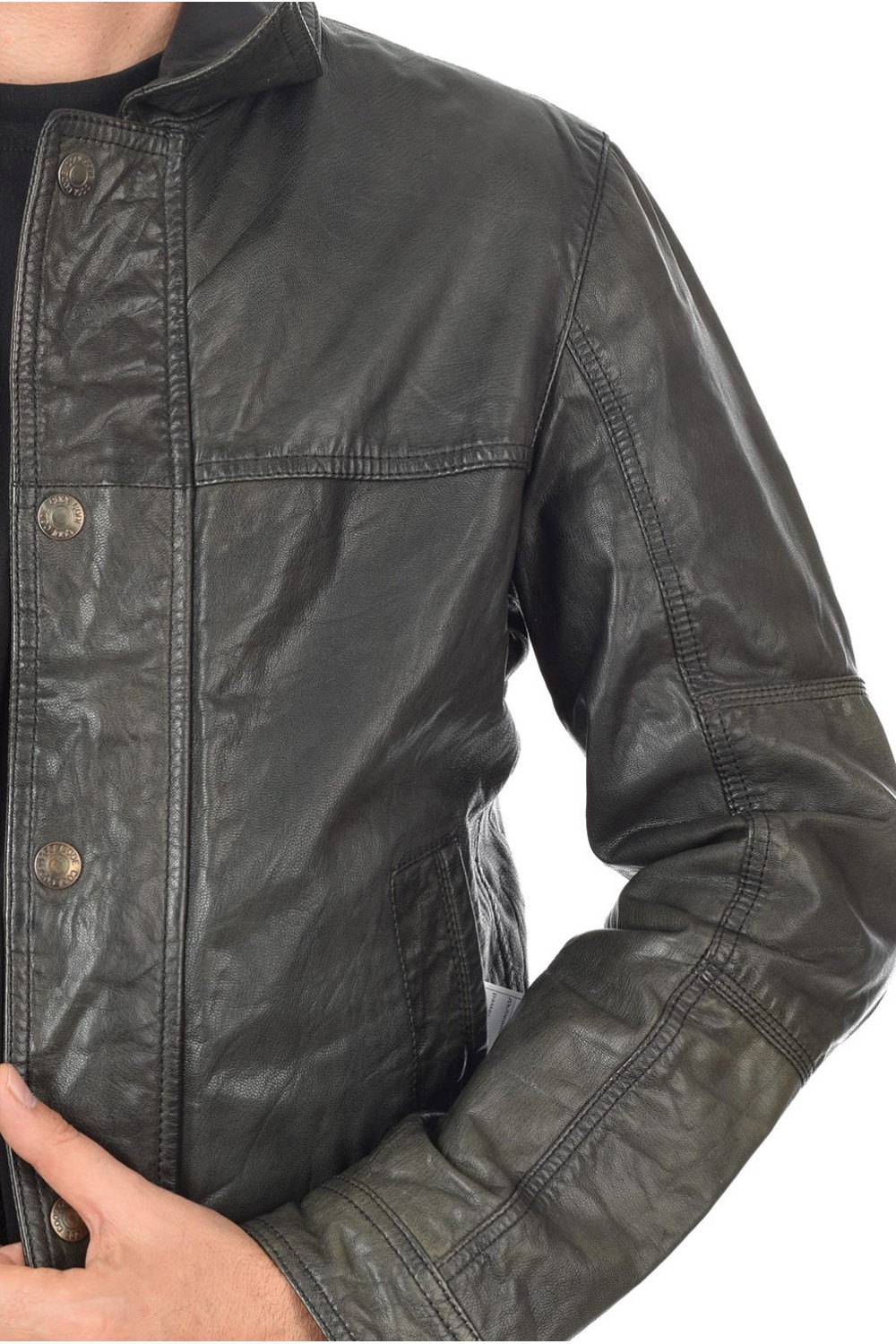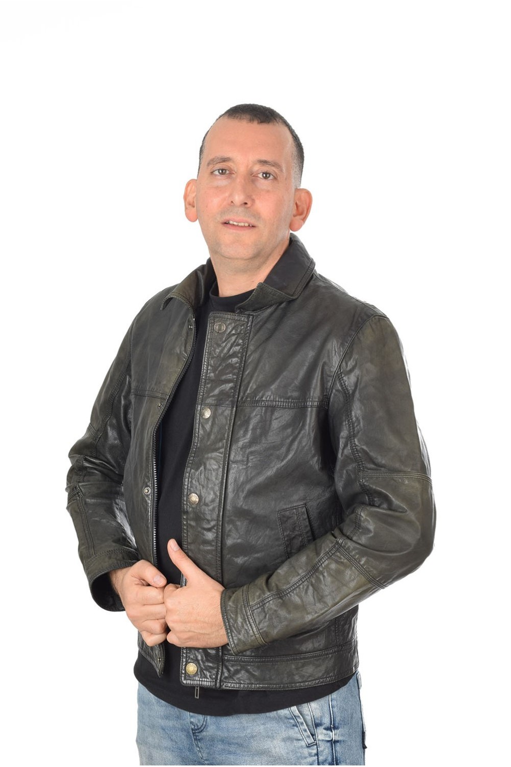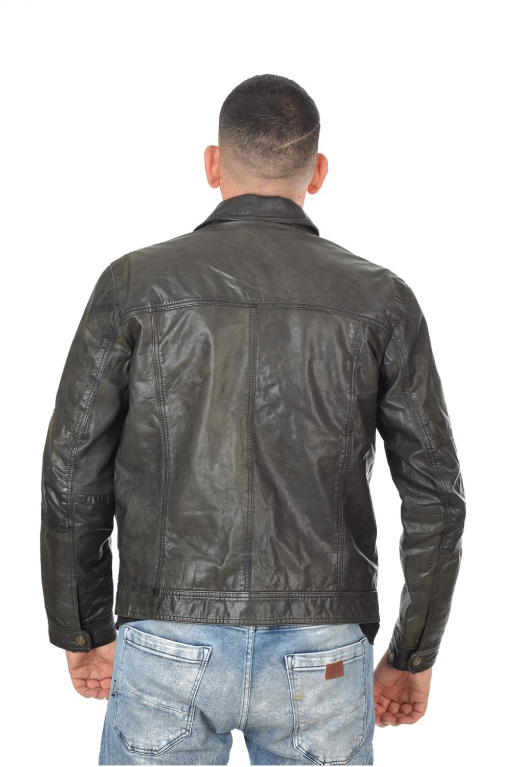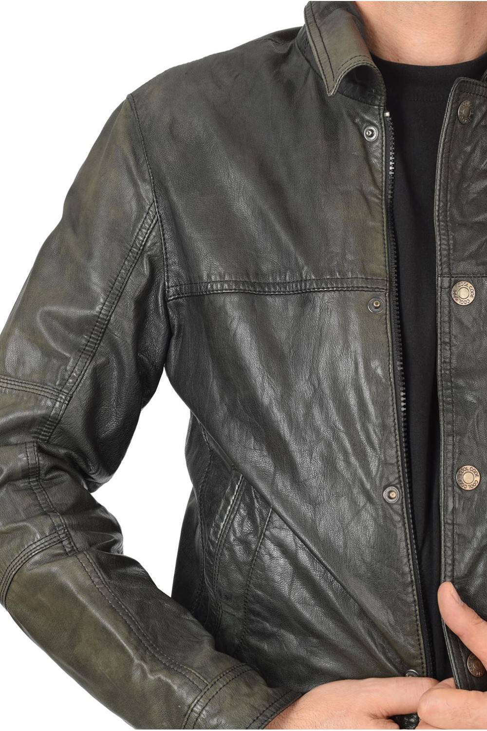 Модно тъмно зелено яке от естествена кожа