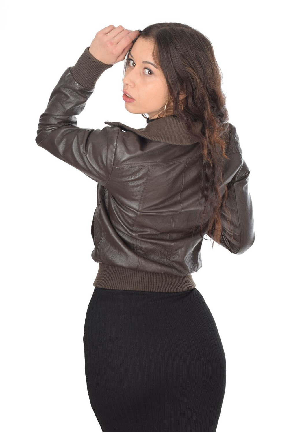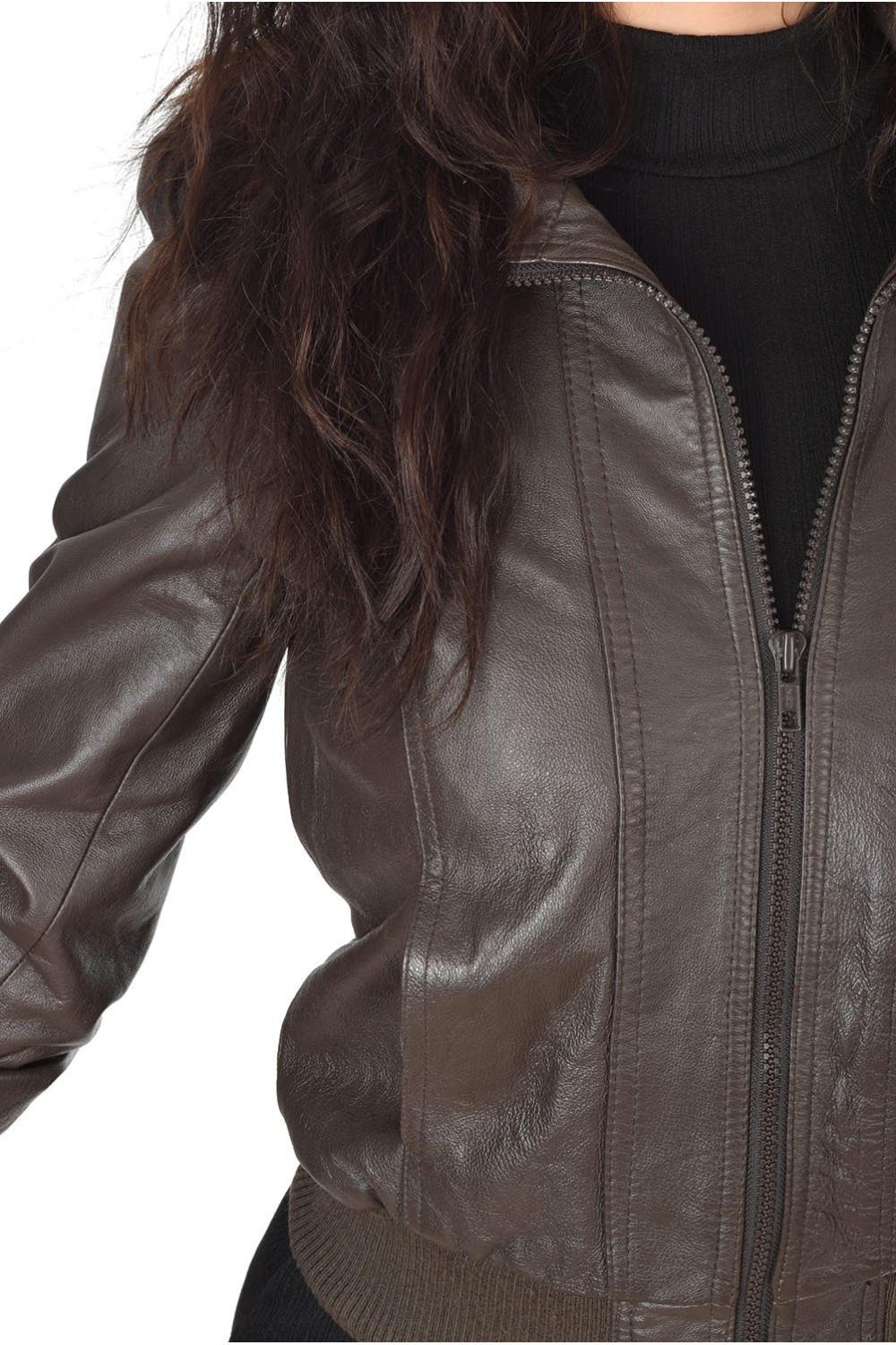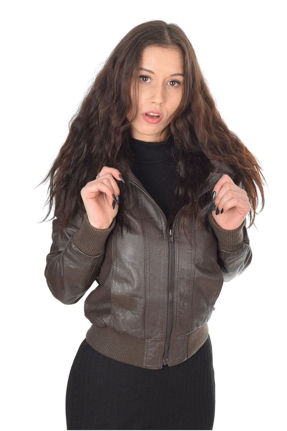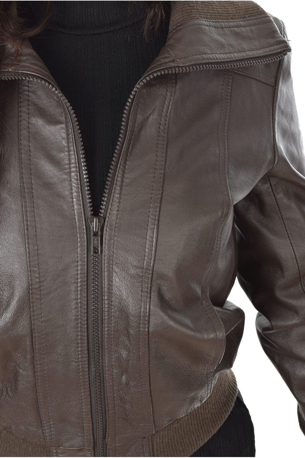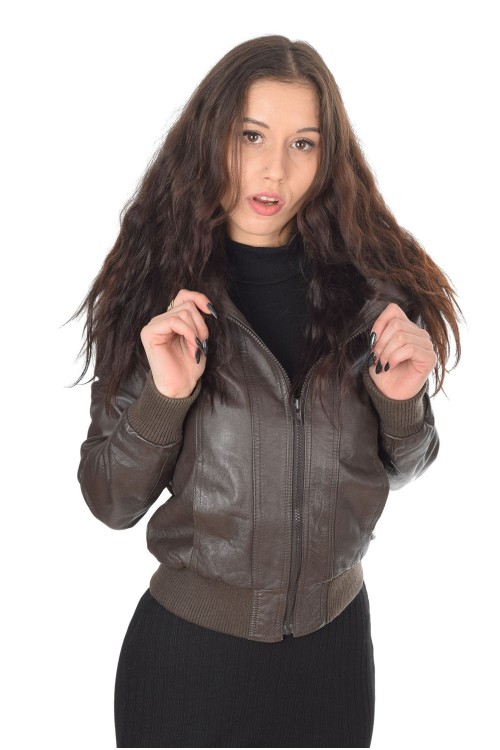 Спортно тъмно кафяво яке от естествена кожа