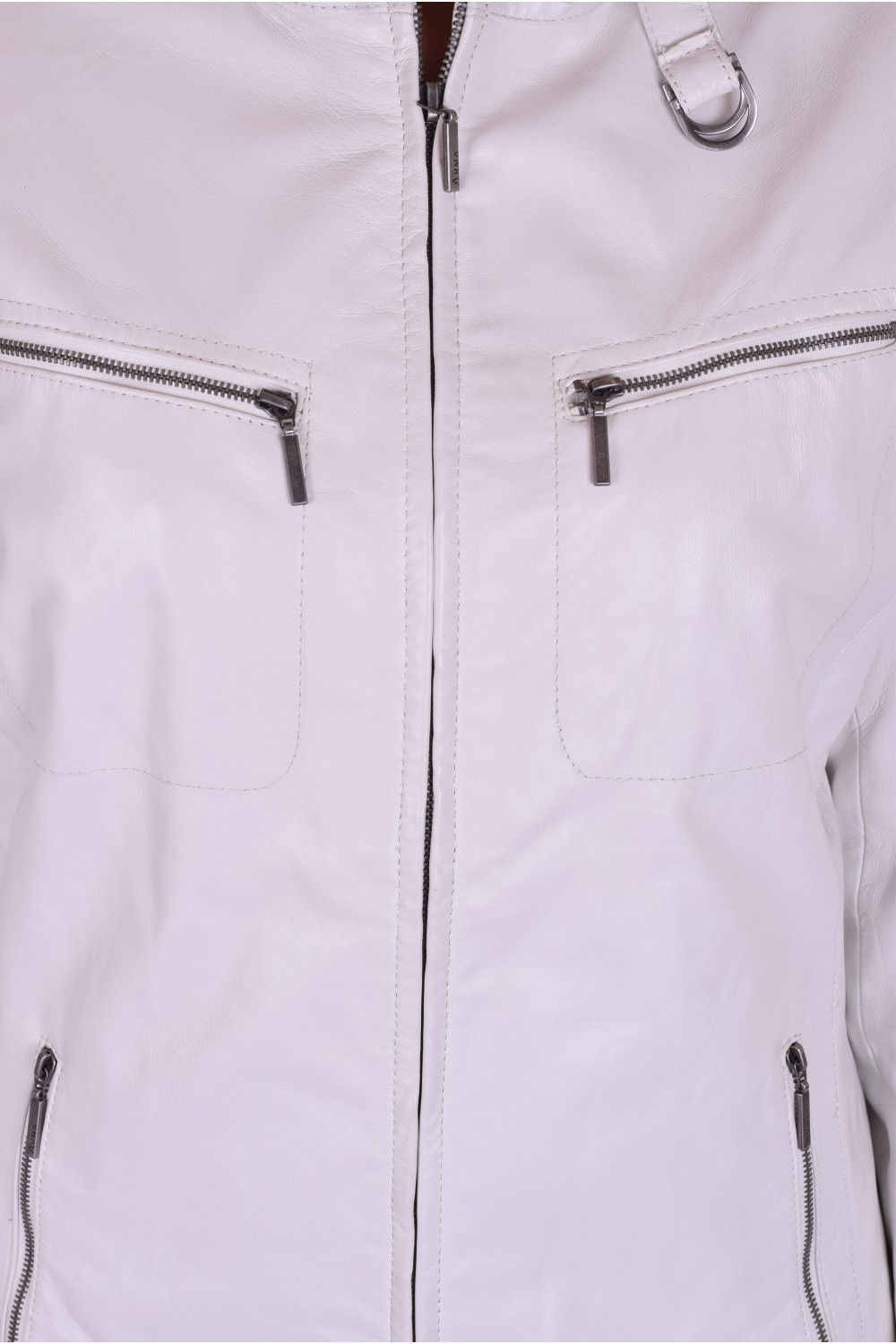 Дамско яке от мека и плътна естествена кожа с четири предни джоба и метален цип. Гръдна обиколка: 102 см. Дължина: 64 см. Талия: 94 см. Ханш: 96 см. Рамене: 43 см. Разстоянието на раменете е измерено от шев до шев на ръкавите. Дължина на ръкав: 63 см. Mоделът е висок: 170 см.| За продукта | |