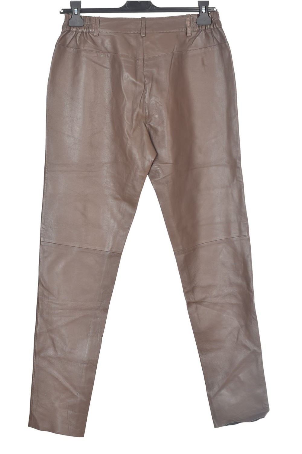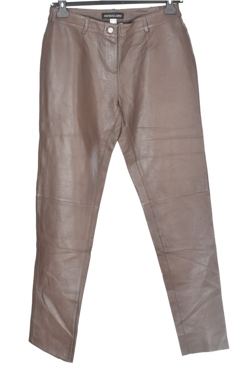 Тъмно кафяв дамски панталон от естествена кожа