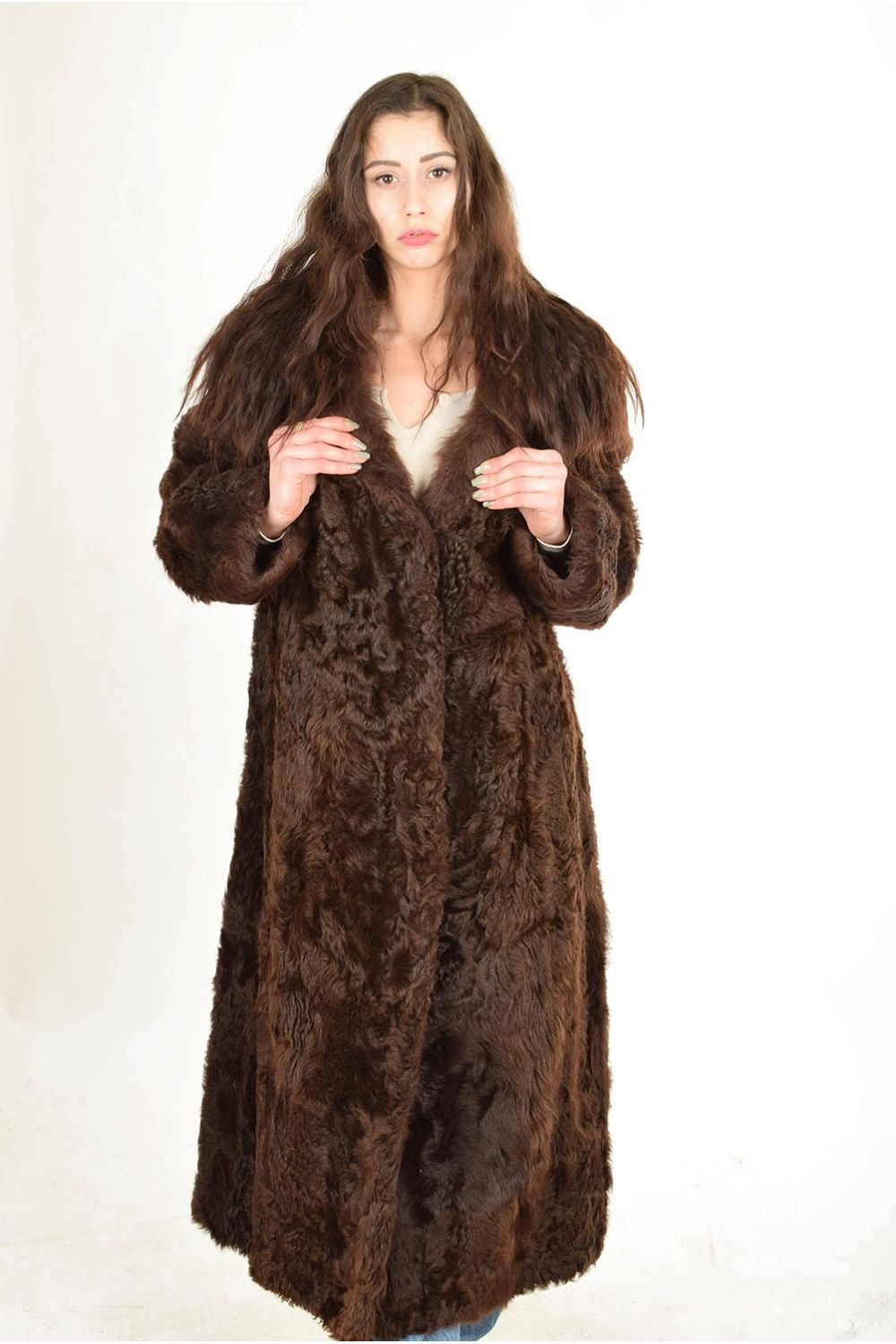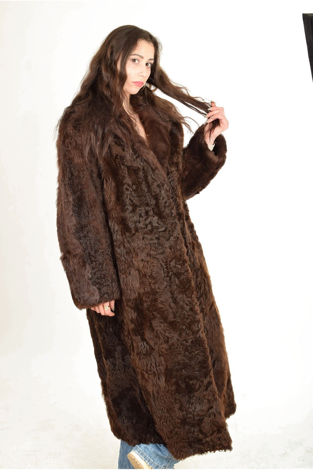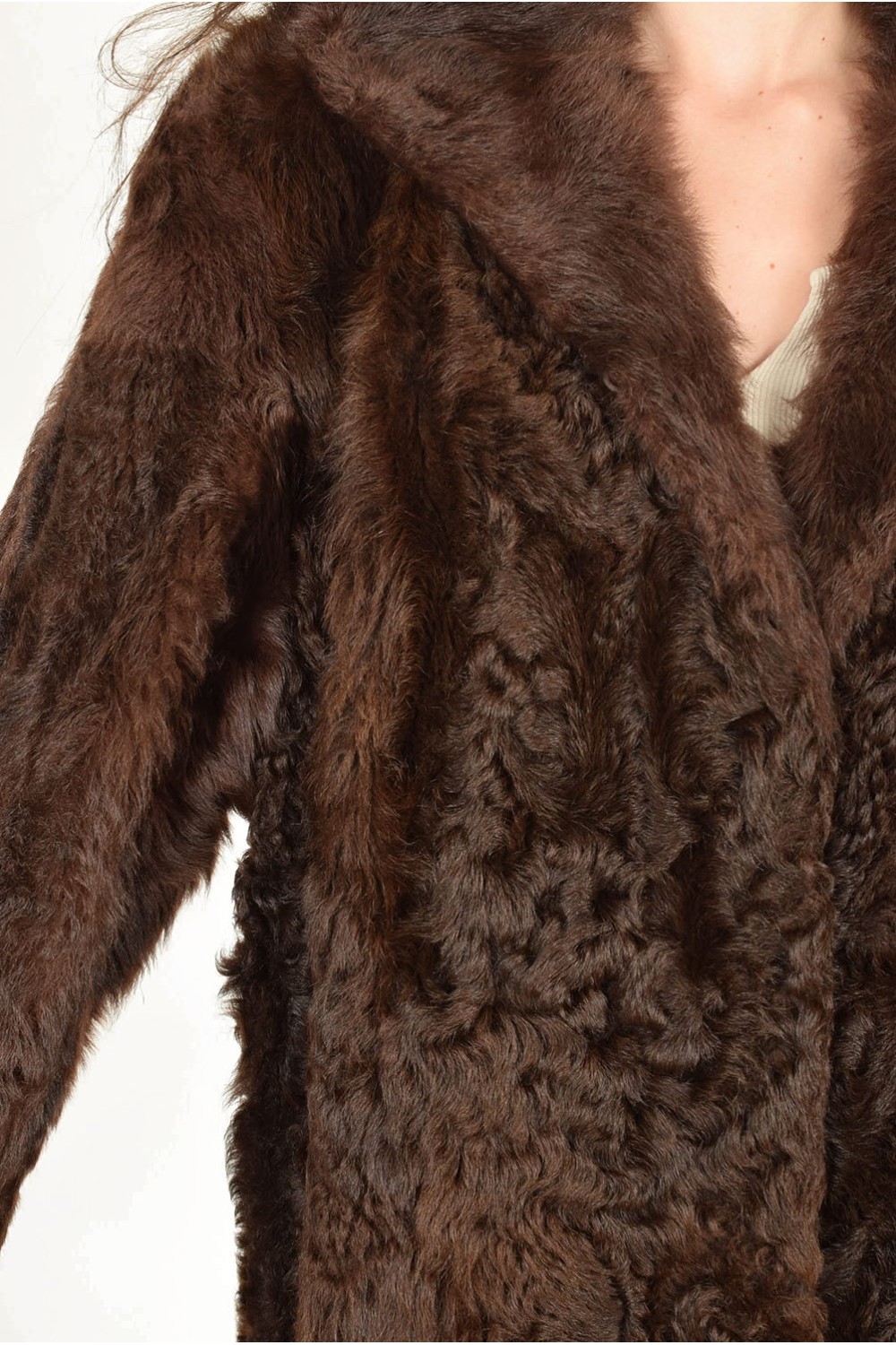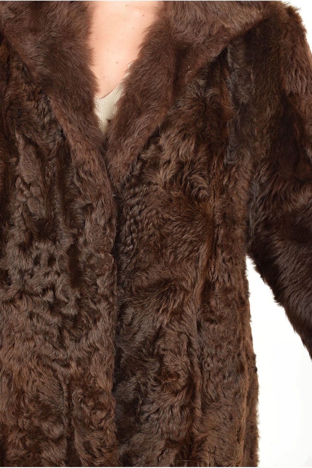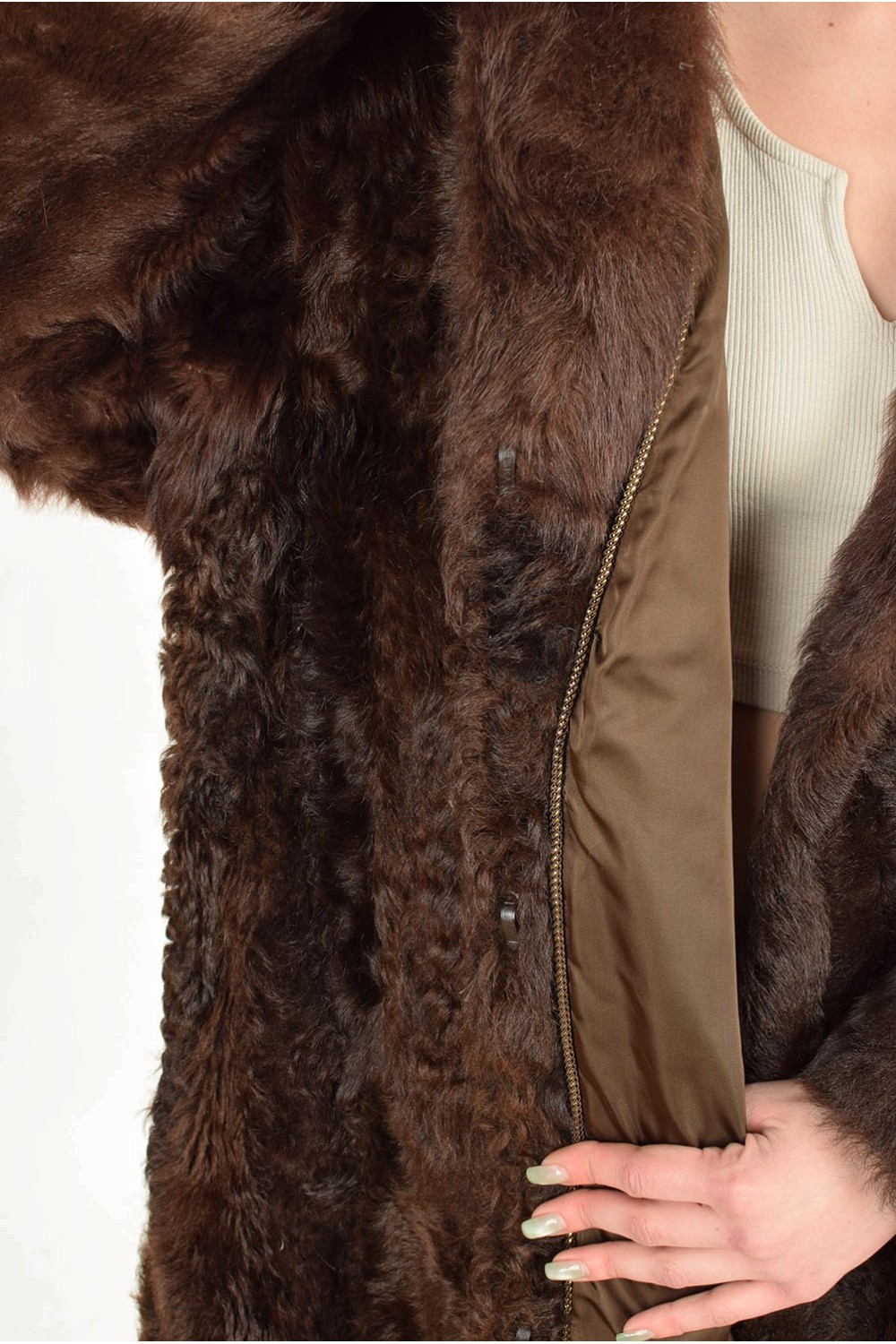 Тъмно кафяво палто от естествен косъм